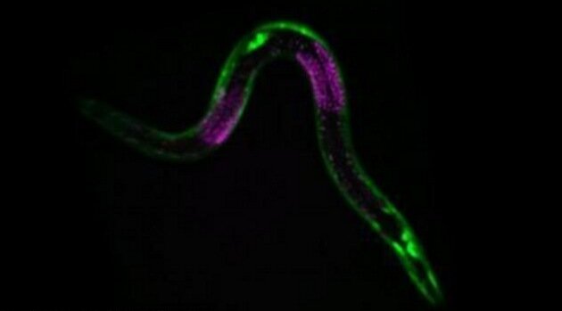Se trata del nematodo C.Elegans, una especie de rabdítido de apenas un milímetro de longitud . Los investigadores de la Universidad de Duke, EE.UU., han comprobado que este organismo, en caso de escasez de alimento, puede entrar en un estado especial en el que frena su desarrollo. El organismo continúa moviéndose, pero sus células se mantienen 'congeladas' y no envejecen; de tal forma que cuando vuelve a disponer de alimento, retoma su desarrollo, y su esperanza de vida aumenta, pudiendo alcanzar hasta el doble de lo normal.